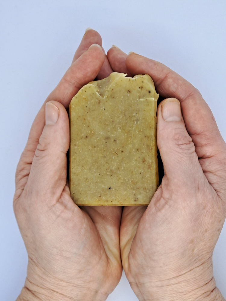 - prírodné mydlo harmančekové s kozím mliekom a pomarančovou silicou